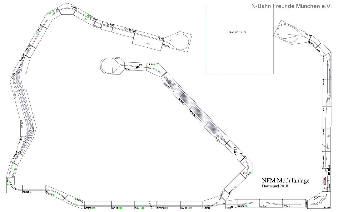 Unsere Modulanlage mit 150 m² Fläche bot Gelegenheit, etwa 12 bis 15 Züge gleichzeitig fahren zu lassen. Der große Hauptstadtbahnhof bot dabei gute Überholmöglichkeiten. Dieselbe Anlage in H0 aufzubauen, würde die 4-fache Fläche, also 600 m² belegen, und wäre damit auch für eine solch große Messe wie die Intermodellbau Dortmund kaum noch praktikabel.