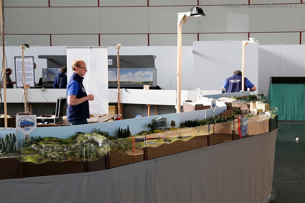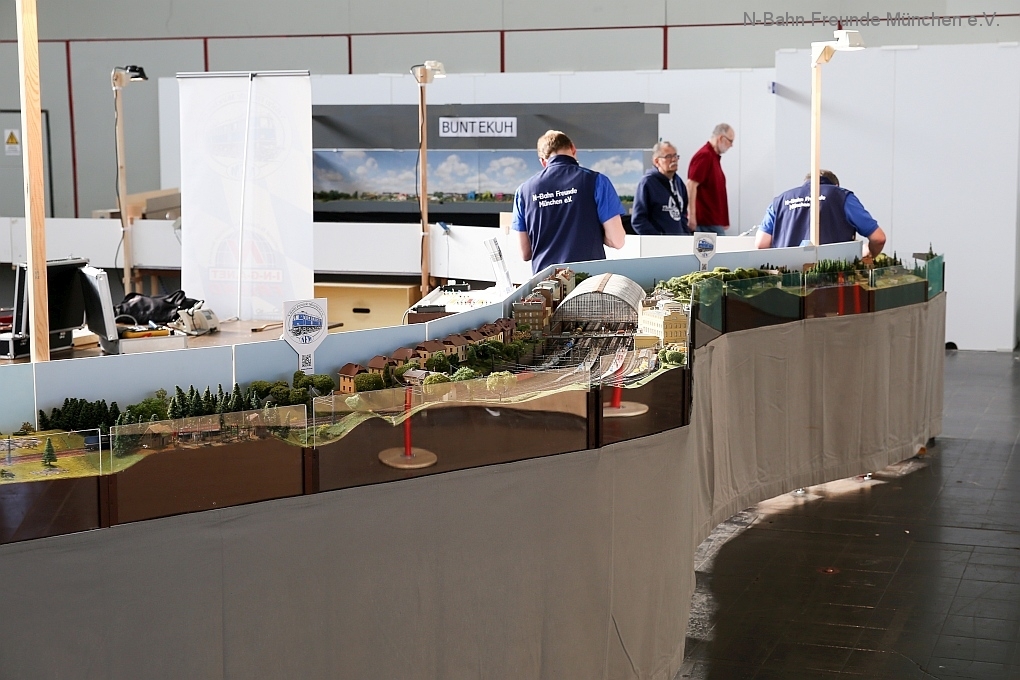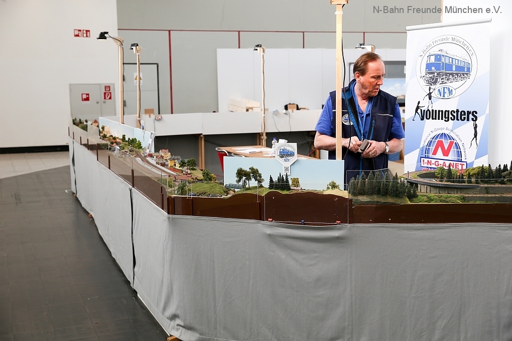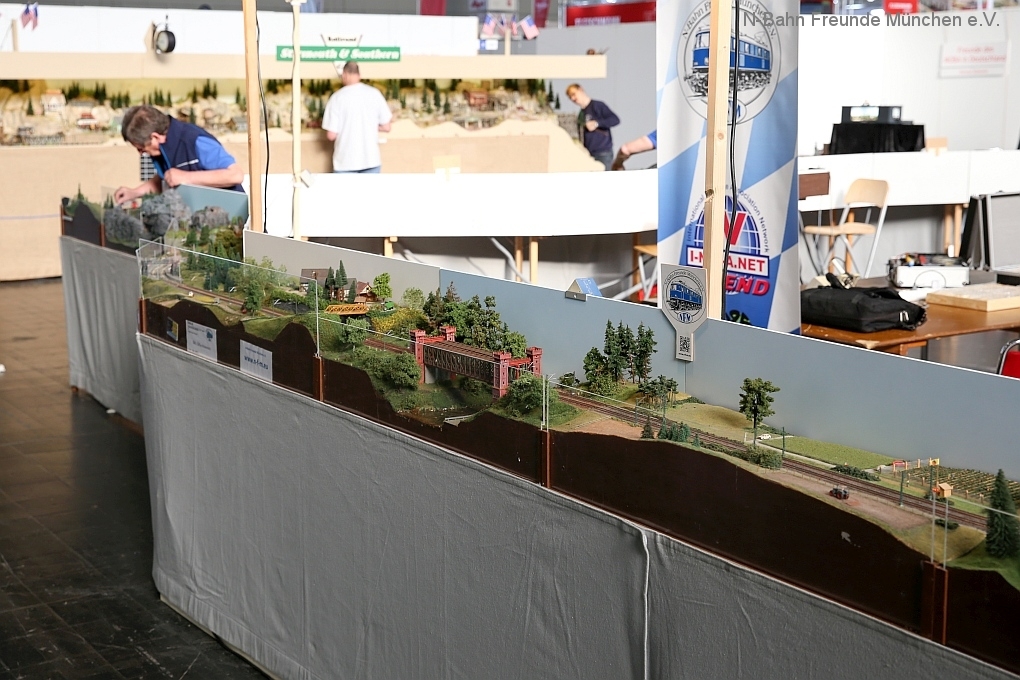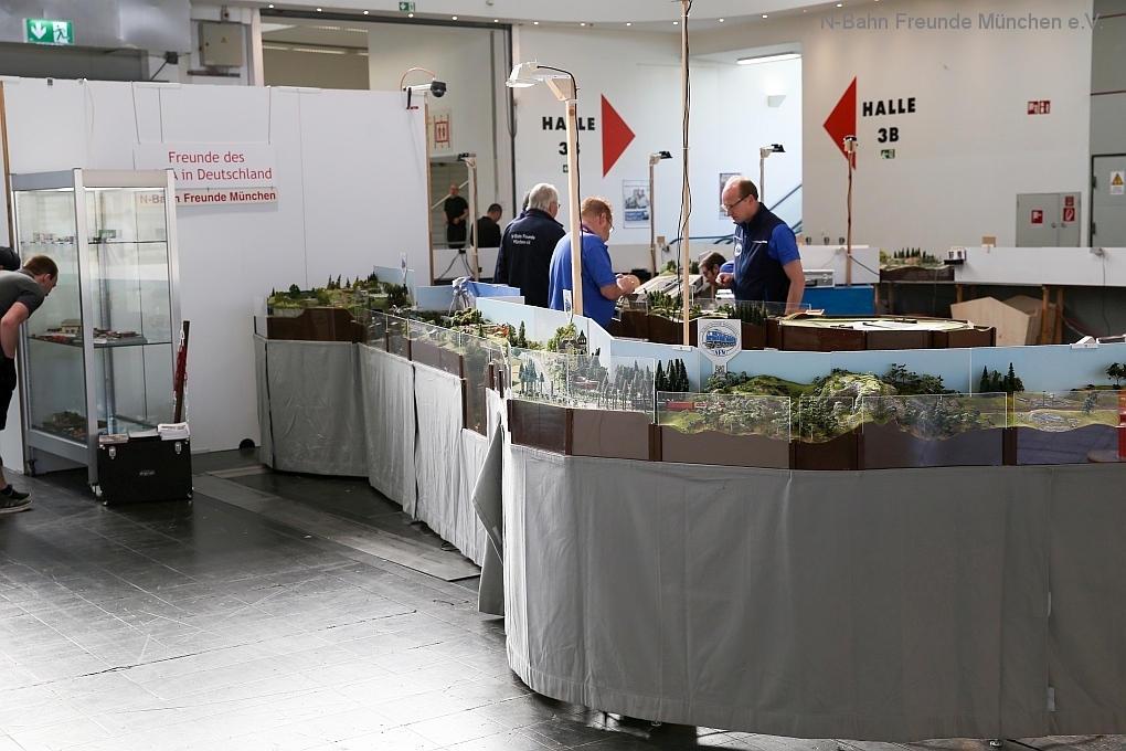 Zusammen mit 30 weiteren „ideellen“ Anlagen-Ausstellern hatten wir unsere weitläufige Modulanlage aufgebaut. Es waren alle gängigen Spurweiten vertreten, von Spur 1 (1:32) bis Spur Z (1:220). In Spur N (1:160) waren vier Anlagen ausgestellt. Fast alle Großserienherstellen und sehr viele Kleinserienhersteller hatten ihre Messestände in den Hallen 4 und 7 aufgebaut und zeigten ihr breites Produktportfolio und ihre Neuheiten.