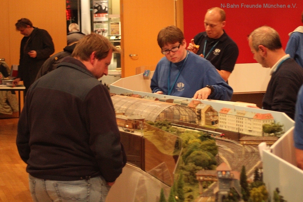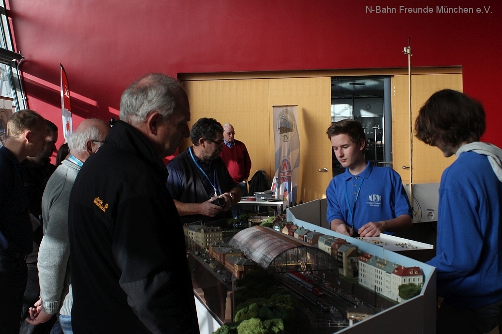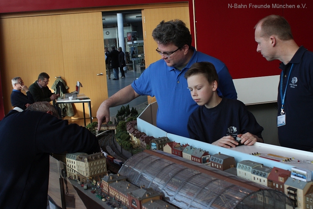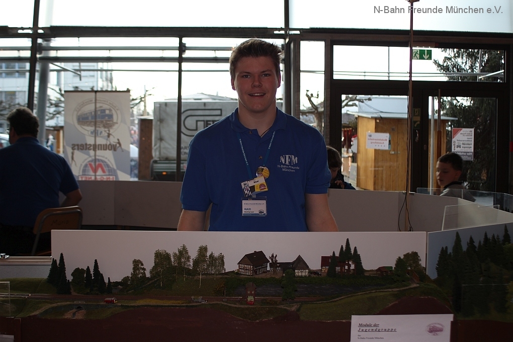 Dieses Jahr standen neben dem Motto Zugreisen auch unsere Jugendmodule im Mittelpunkt. Stolz präsentierte unsere Jugend den Besuchern ihre Module und stand für Fragen offen. Zum Teil konnte man die Bewunderung der Besucher erkennen, was unsere Jugend im Alter zwischen 12 und 16 Jahren alles bereits jetzt schon zu leisten vermag. Kleinste Details werden in Szene gesetzt wo manch Erwachsener im Club schmunzeln musste. Auch war der Kommentar zu hören Da kann man ja auch Bahnspotting im kleinen Betreiben. Während die Jugend Ihre Module präsentierten, hatten die Alten genug Zeit um Ihre Züge aus den Koffern zu holen und stolz zu präsentieren. Neben ICE und Rail Jet zog auch der Shinkansen seine Runden über die Anlage und plötzlich musste ein Museumszug der Königlich Bayrischen Eisenbahn halt machen um den Regionalexpress im Bahnhof vorbeizulassen. Nicht nur für unsere kleinen Gäste sondern auch für u