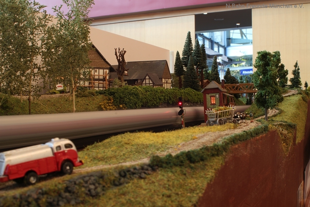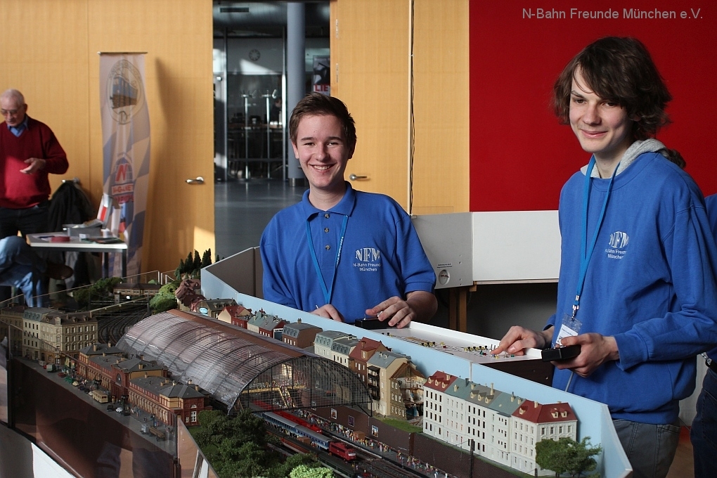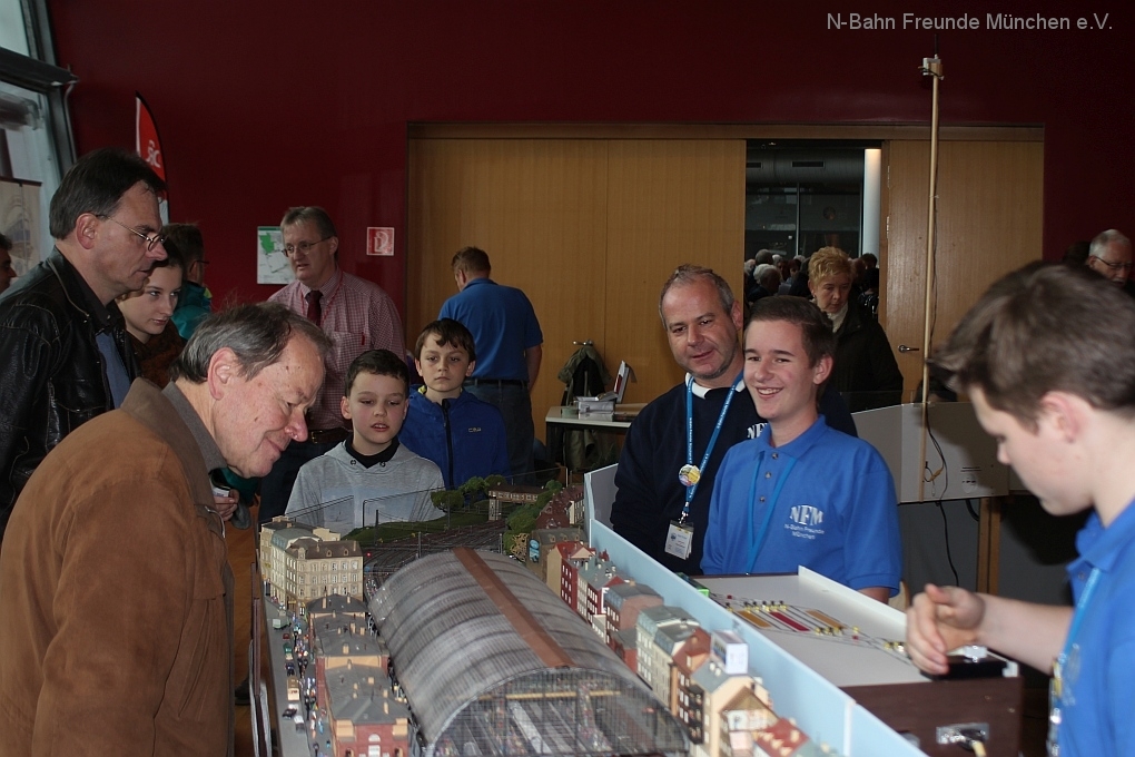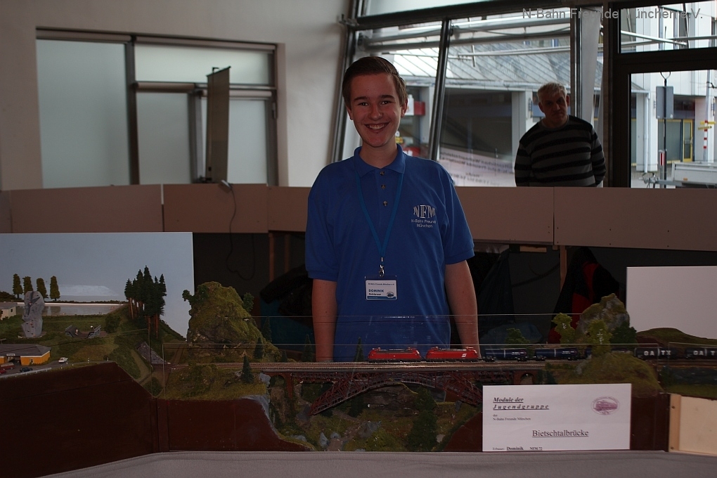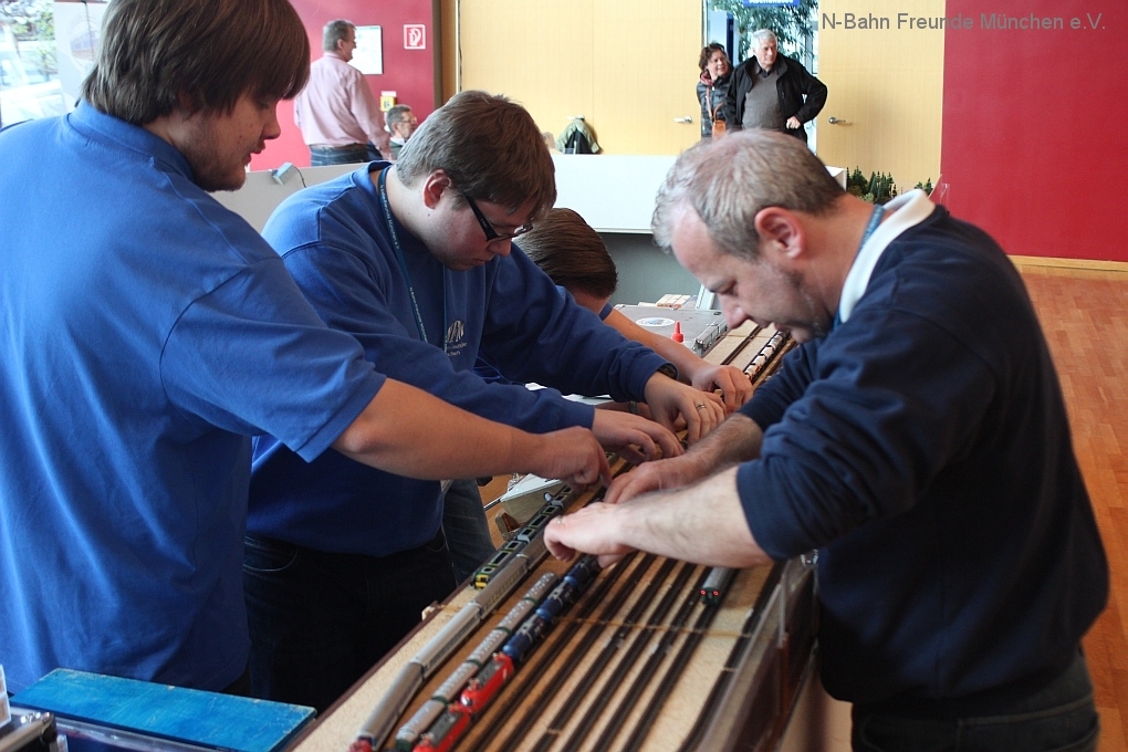 Dieses Jahr standen neben dem Motto Zugreisen auch unsere Jugendmodule im Mittelpunkt. Stolz präsentierte unsere Jugend den Besuchern ihre Module und stand für Fragen offen. Zum Teil konnte man die Bewunderung der Besucher erkennen, was unsere Jugend im Alter zwischen 12 und 16 Jahren alles bereits jetzt schon zu leisten vermag. Kleinste Details werden in Szene gesetzt wo manch Erwachsener im Club schmunzeln musste. Auch war der Kommentar zu hören Da kann man ja auch Bahnspotting im kleinen Betreiben. Während die Jugend Ihre Module präsentierten, hatten die Alten genug Zeit um Ihre Züge aus den Koffern zu holen und stolz zu präsentieren. Neben ICE und Rail Jet zog auch der Shinkansen seine Runden über die Anlage und plötzlich musste ein Museumszug der Königlich Bayrischen Eisenbahn halt machen um den Regionalexpress im Bahnhof vorbeizulassen. Nicht nur für unsere kleinen Gäste sondern auch für u