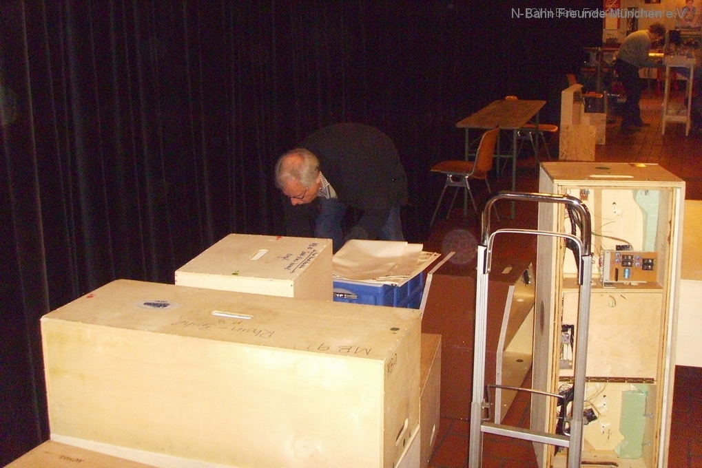 Nach vielen Jahren haben wir wieder einmal am 06. und 07. März 2010 bei unseren Freunden von der Modellbahn-Arbeitsgemeinschaft Kaarst (MAK) in deren Räumlichkeiten in Kaarst an einer Ausstellung teilgenommen. Es ist zwar eine weite Anreise von ca. 650 km, aber was dort alle 2 Jahre auf die Beine gestellt wird ist schon beachtlich. Nachdem wir mit großem Hallo begrüßt worden sind und unseren Platz zugewiesen bekommen hatten, ging auch schon das Ausladen und Aufbauen los. Die zugesagte Fläche hatte zwar nicht ganz gestimmt, aber für alte Modulbauer-Hasen ist das kein wirkliches Problem. Kaum hatten wir mit dem Aufbau begonnen als überraschenderweise Verstärkung auftauchte. Das kam gerade sehr gelegen und schwupps – hatten wir einen dritten Helfer. So ging der Aufbau recht zügig von statten und um ca. 19:00 stand die Anlage fahrbereit aufgebaut.