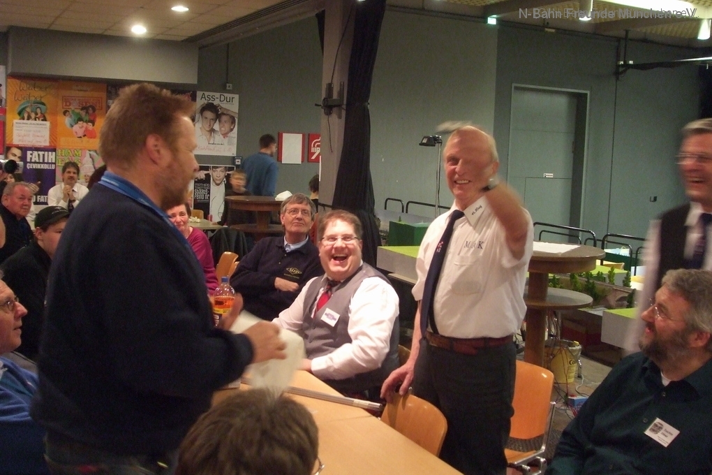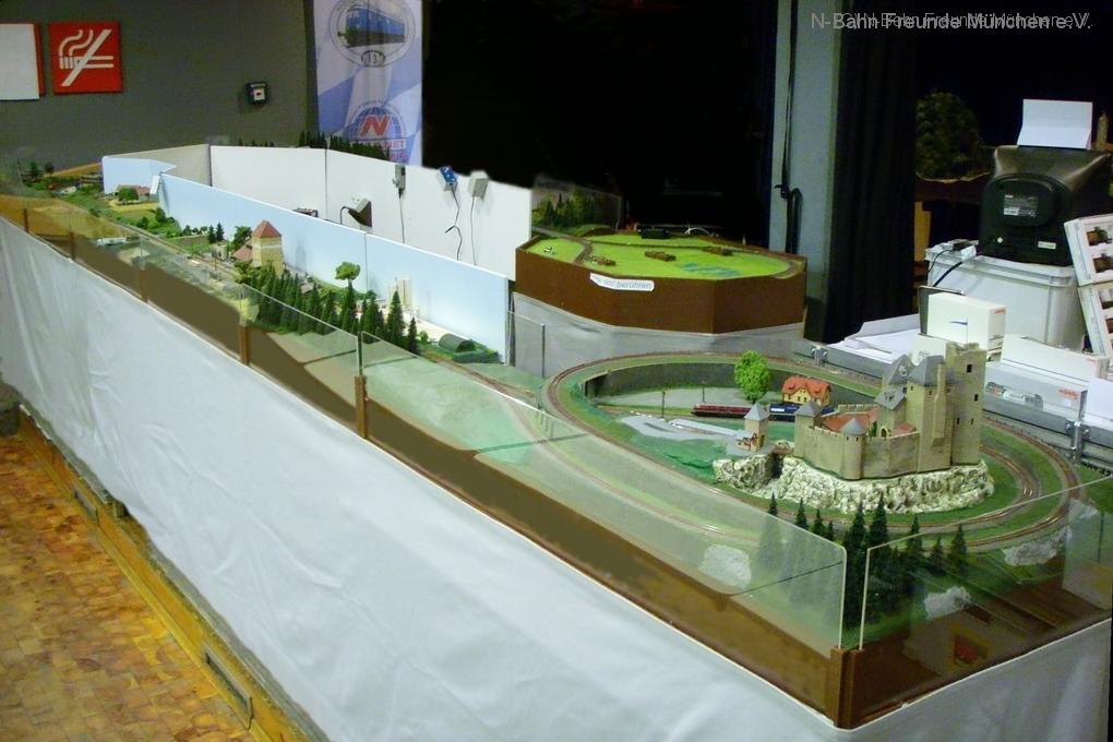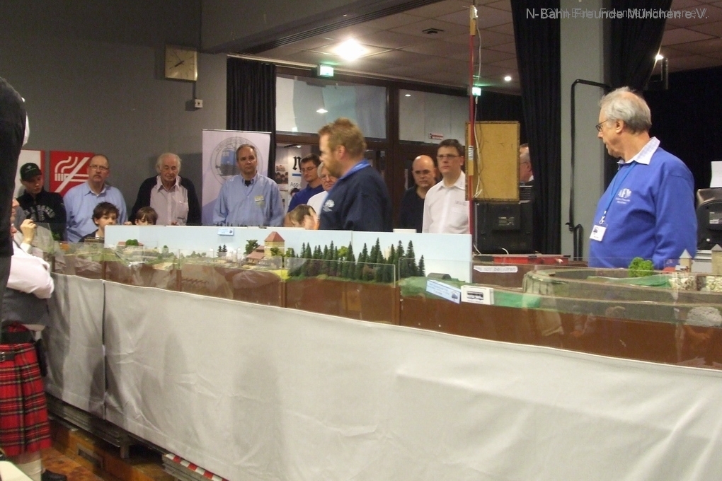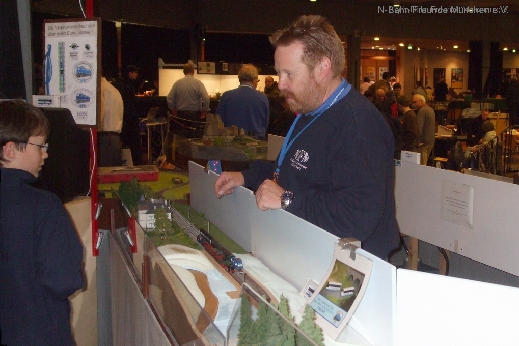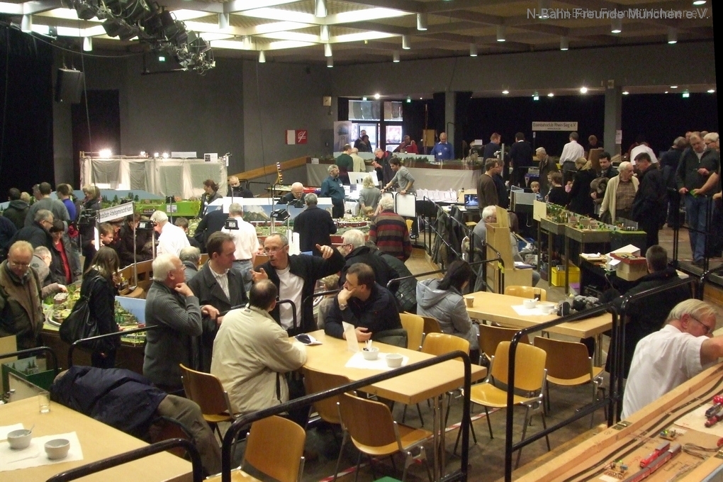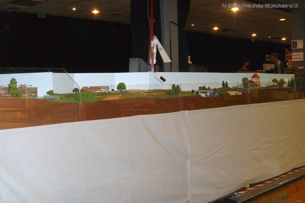 Am Sonntag war ein ähnlich großer Zuschauerbesuch zu verzeichnen. Dennoch hatten wir immer wieder Gelegenheit, uns auch die anderen Anlagen anzuschauen. Neben der MAK waren N-Anlagen aus Belgien, aus Holland und aus Deutschland zu sehen. Außerdem eine sehr schöne Faller-Car-System Anlage ganz ohne Eisenbahn, dafür aber mit Fahrzeugen die alle möglichen Raffinessen aufwiesen. Besonders die deutsche N-Anlage nach englischen Vorbildern (1:148) war sehr liebevoll und sehenswert gestaltet. Aber auch die anderen Spurweiten waren mit sehr schönen Anlagen vertreten. Doch alles hat mal ein Ende und so schloss um 17:00 Uhr pünktlich die Ausstellung. Um 19:00 Uhr war unser Transporter fertig eingeladen, und wir wurden noch zu einem „Resteessen“, das mehr als üppig war – wie auch die Verpflegung während der ganzen Ausstellung ein großes Lob verdiente – eingeladen. Gegen 20:00 Uhr beschlossen wir spontan, auf eine weitere Nachtruhe zu verzichten, und sind gegen 20:15 Uhr in Richtung Heimat aufgebrochen. Durch keinen nennenswerten Verkehr behindert trafen wir gegen 2:00 Uhr wieder wohlbehalten in München ein. Siehe da, inzwischen waren die grünen Flächen wieder weiß – was uns allerdings nicht gerade zu Jubelstürmen veranlasste. Die Module und die Ausrüstung sind inzwischen wieder alle aufgeräumt und so können wir uns auf das Highlight für 2010 vorbereiten – unsere Ausstellung im Mai in der Flugwerft in Oberschleißheim.