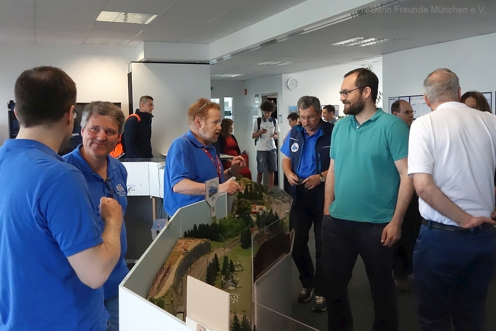 Auch für uns Modellbahner war der Tag eine große Bereicherung, denn wann hat man schon einmal Gelegenheit, mit kompetentem Betriebspersonal zu reden, die technischen Daten der diversen Lokomotiven genauer zu studieren und in den Schulungsunterlagen und Handbüchern zu stöbern. Faszinierend für uns waren als Aushang von den firmeneigenen Lokomotiven Steckbriefe mit den technischen Details der Loks zu sehen. Der Ausbilder und Prüfer für Eisenbahnfahrzeugführer, gab uns kompetent und umfassend Antwort auf unsere vielen Fragen. Einige von uns durften auf dem stark belagerten Fahrsimulator ihre Eignung zum Lokführer ausprobieren. Im Gegenzug haben wir einige jugendliche Besucher an unserem Fiddle Yard zum Modellbahn-Fahrdienstleiter ausgebildet.