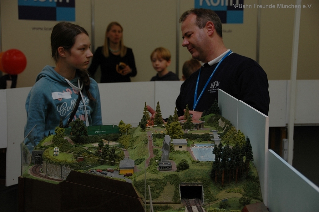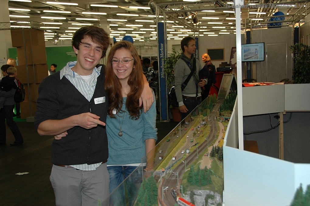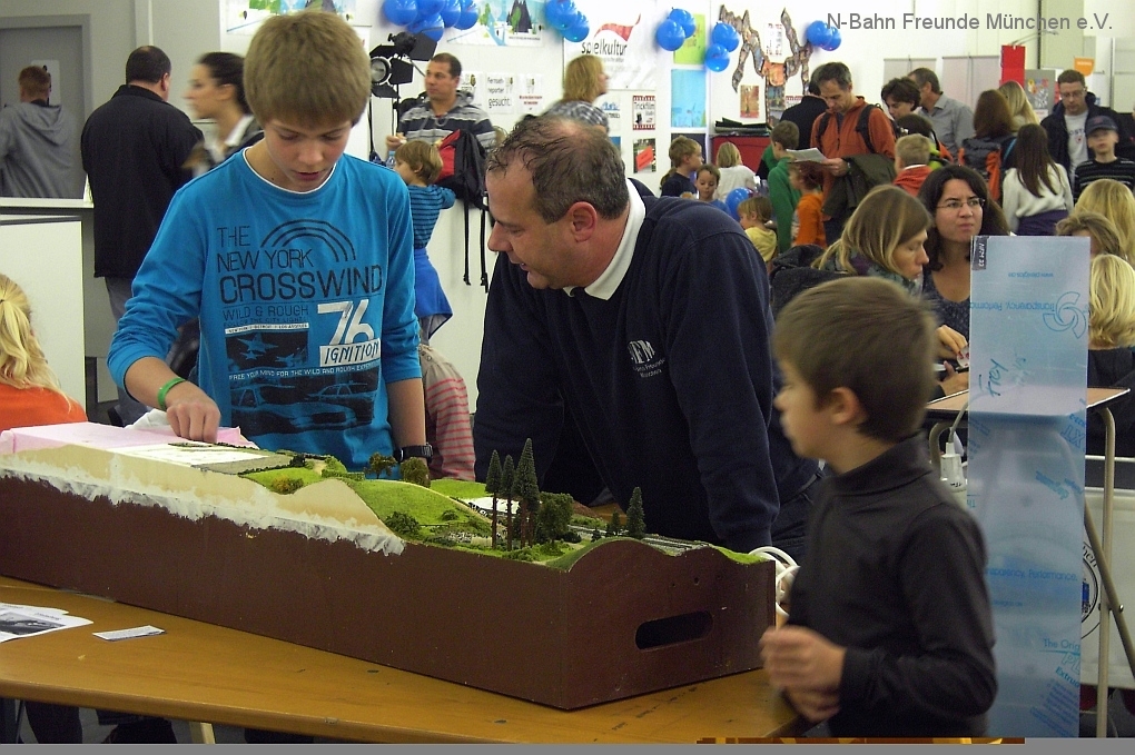 Da darf auch die Modellbahn nicht fehlen, der klassische MINT Türöffner der 50er/60er Jahre, denn noch heute löst die Modellbahn große Faszination aus, nicht nur bei Andreas. Davon konnten wir an unserer Anlage auch Herrn Staatssekretär Bernd Sibler überzeugen, der in Vertretung des Herrn Staatsminister Dr.Spaenle die Messe eröffnet hat.