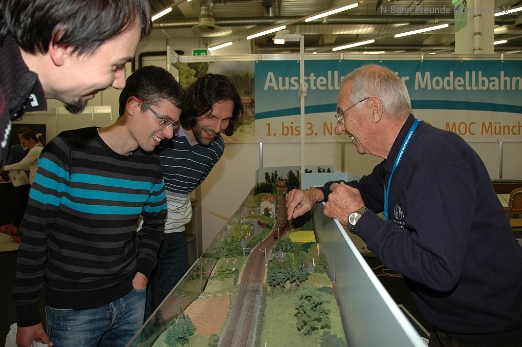 Schon seit 2 Stunden umkreiste er unsere Modulanlage auf der FORSCHA Messe im M.O.C München, hatte immer wieder unser Standpersonal befragt und sich alle Details eingeprägt. Er wusste schon, dass die Module unserer Anlage freizügig miteinander kombiniert werden können und von 3 Fahrdienstleitern gesteuert werden: am Fiddle Yard, am Abzweig und am Bahnhof. Er wusste ferner, dass zwischen diesen 3 Betriebsstellen der Verkehr im automatischen Selbstblock abläuft.