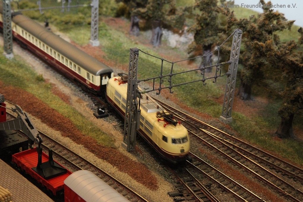 Da darf auch die Modellbahn nicht fehlen, der klassische MINT Türöffner der 50er/60er Jahre, denn noch heute löst die Modellbahn große Faszination aus, nicht nur bei Andreas. Davon konnten wir an unserer Anlage auch Herrn Staatssekretär Bernd Sibler überzeugen, der in Vertretung des Herrn Staatsminister Dr.Spaenle die Messe eröffnet hat.