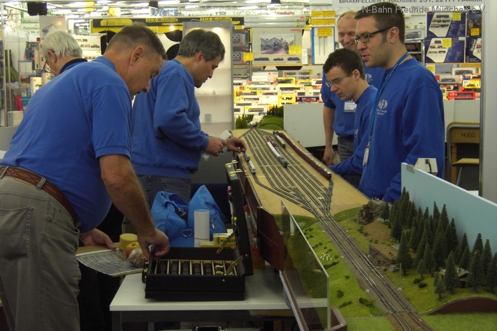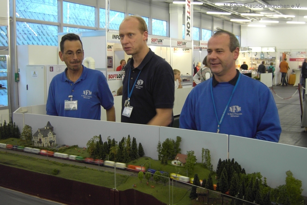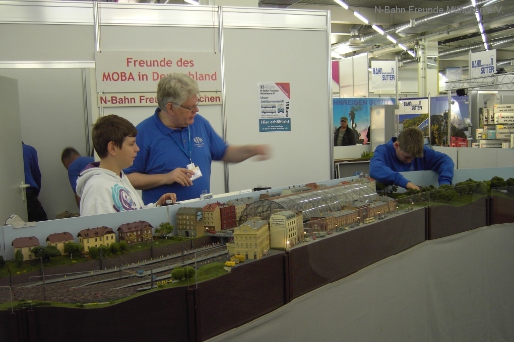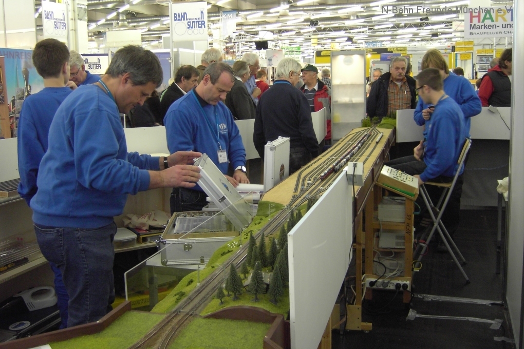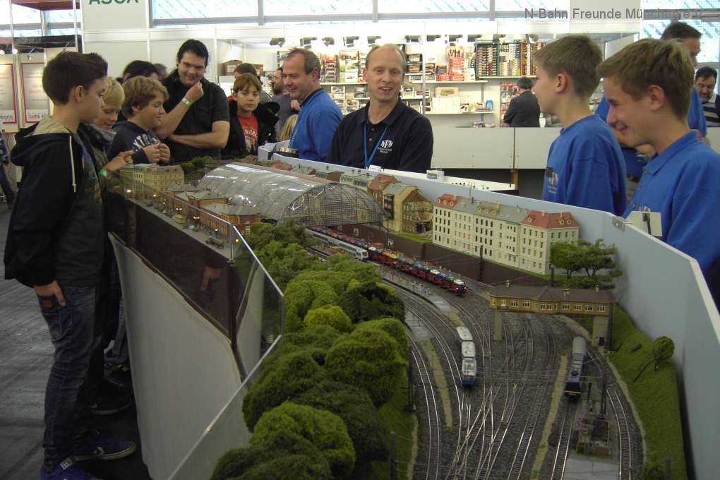 Die N-Bahn Freunde München e.V. (NFM) waren mit dabei und zeigten den zahlreich anwesenden Fach- und Freizeitbesuchern drei Tage lang auf Ihrem 100 m² großen Stand eine analoge/elektronisch gesteuerte zweigleisige Hauptbahn sowie eine digital gesteuerte zweigleisige Nebenbahn. Die Hauptbahn rund um den Hauptbahnhof „Bonnburg“ umfasste auf 30 m Länge 23 Module und 2 Segmente mit einer Streckenlänge von etwa 80 m. Die Nebenbahn mit dem Ausgangsbahnhof „Ettenried“ bestand auf ihren 8 m Ausdehnung aus 9 Modulen, welche etwa 20 m Streckenlänge bot.
