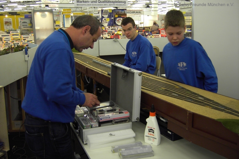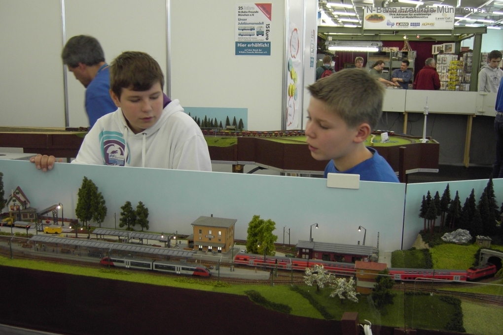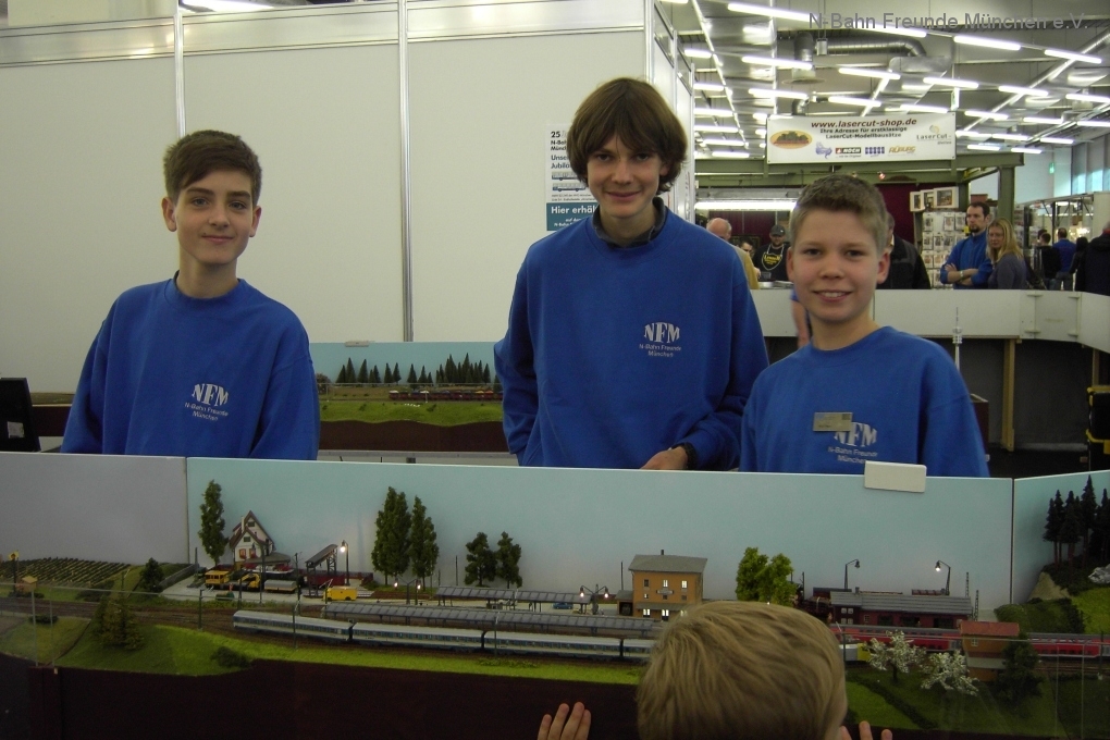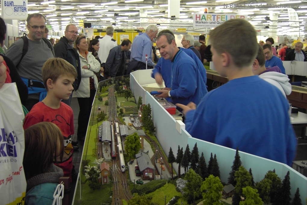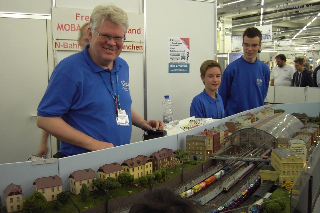Die N-Bahn Freunde München e.V. (NFM) waren mit dabei und zeigten den zahlreich anwesenden Fach- und Freizeitbesuchern drei Tage lang auf Ihrem 100 m² großen Stand eine analoge/elektronisch gesteuerte zweigleisige Hauptbahn sowie eine digital gesteuerte zweigleisige Nebenbahn. Die Hauptbahn rund um den Hauptbahnhof „Bonnburg“ umfasste auf 30 m Länge 23 Module und 2 Segmente mit einer Streckenlänge von etwa 80 m. Die Nebenbahn mit dem Ausgangsbahnhof „Ettenried“ bestand auf ihren 8 m Ausdehnung aus 9 Modulen, welche etwa 20 m Streckenlänge bot.