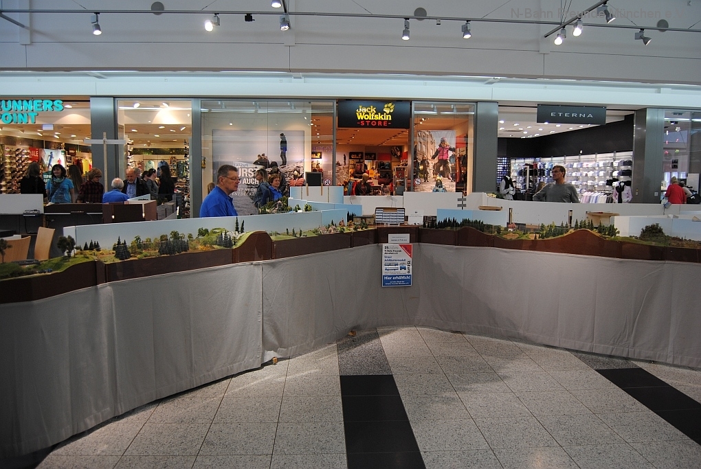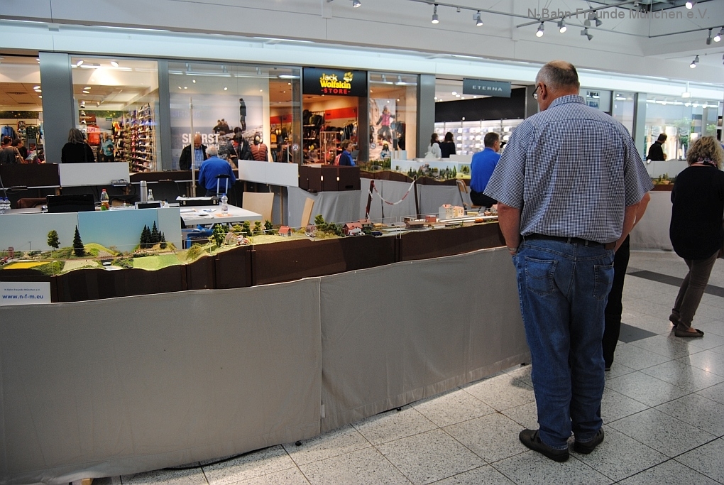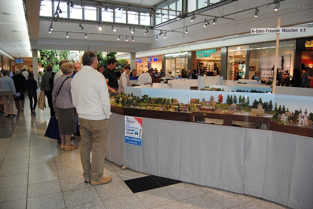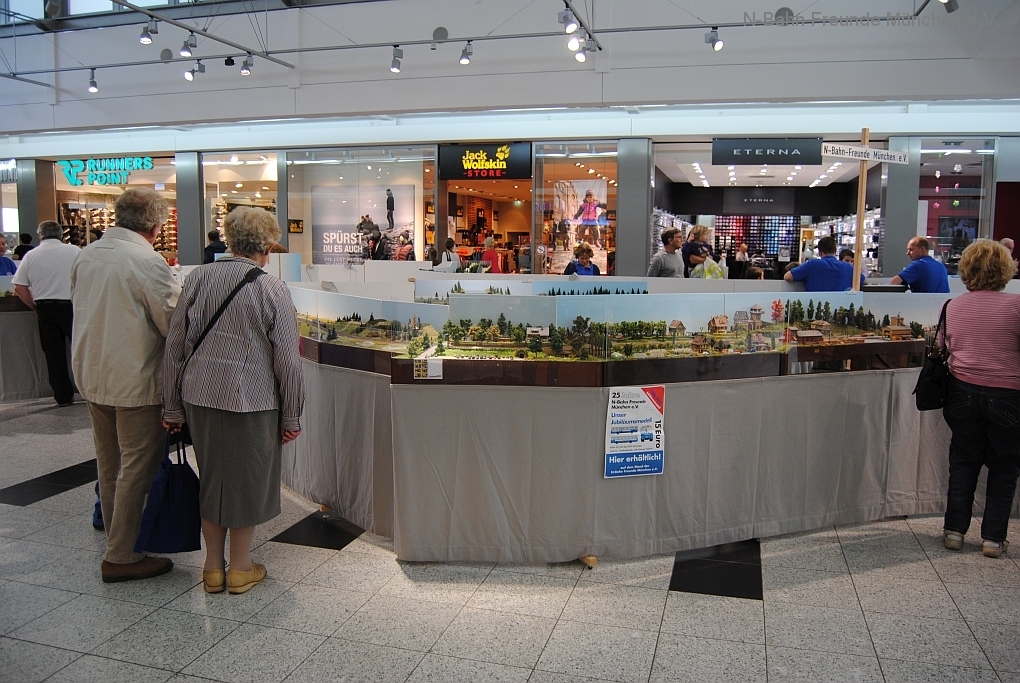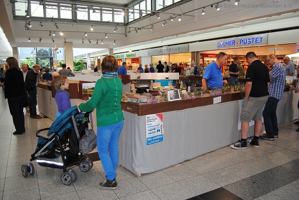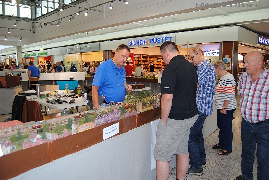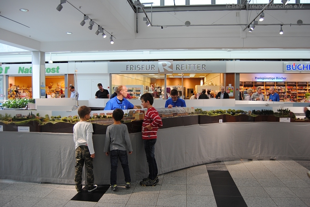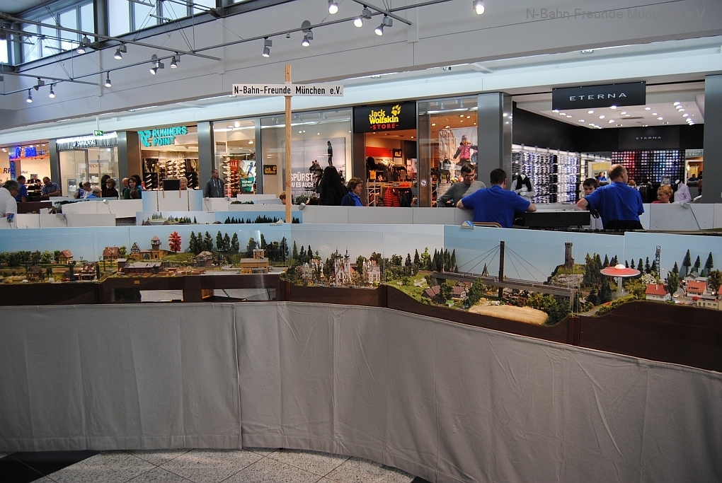 Mit der N-Spur-Schauanlage der N-Bahn Freunde München gab es Aufklärung im Donau-Einkaufszentrum. Wir waren überrascht von dem Fachwissen zur Modellbahn quer über alle Spurweiten und im Speziellen zur Spur N.