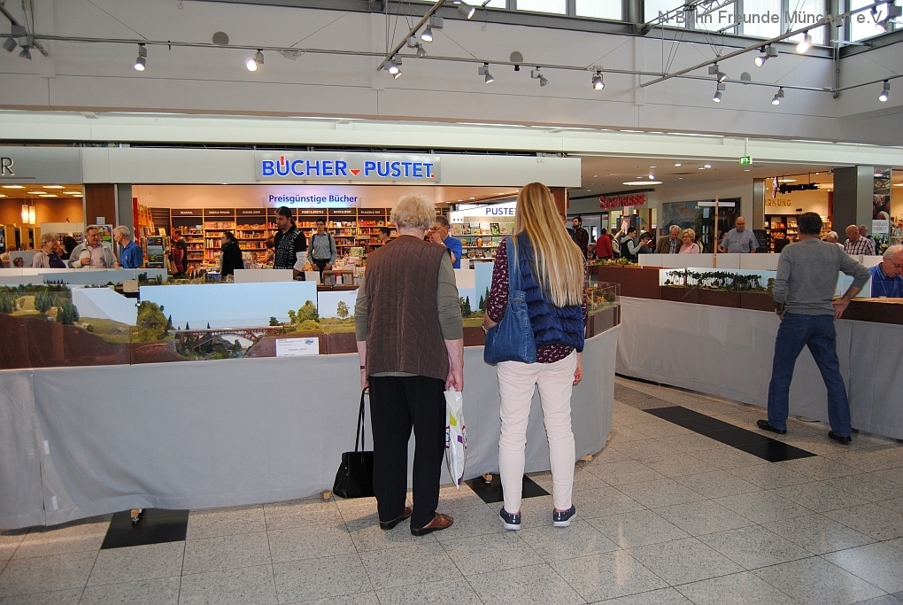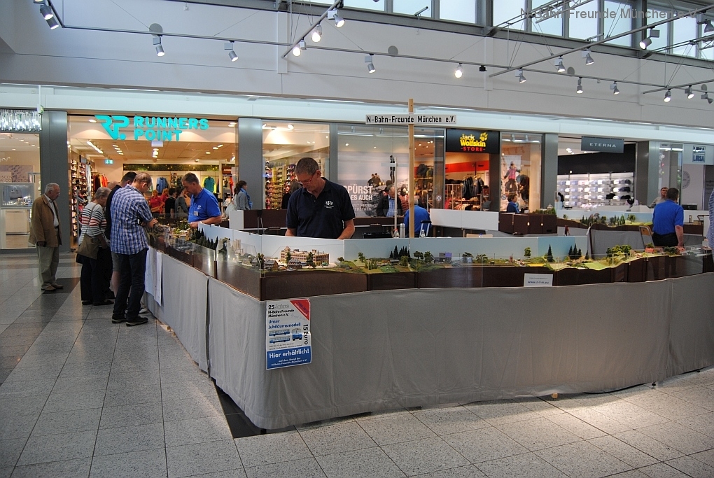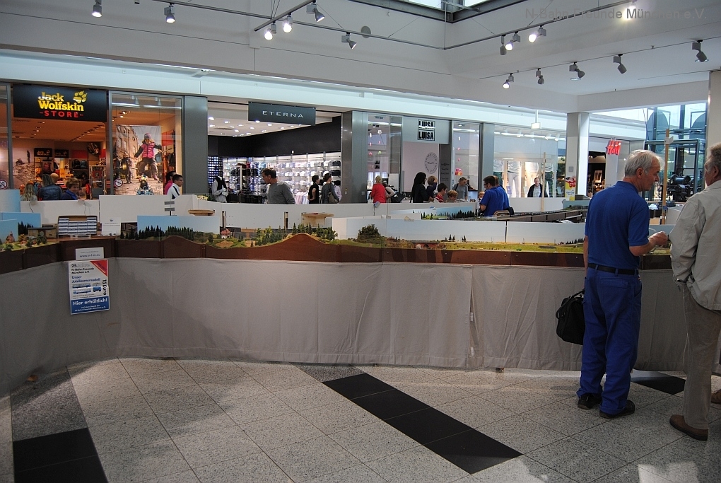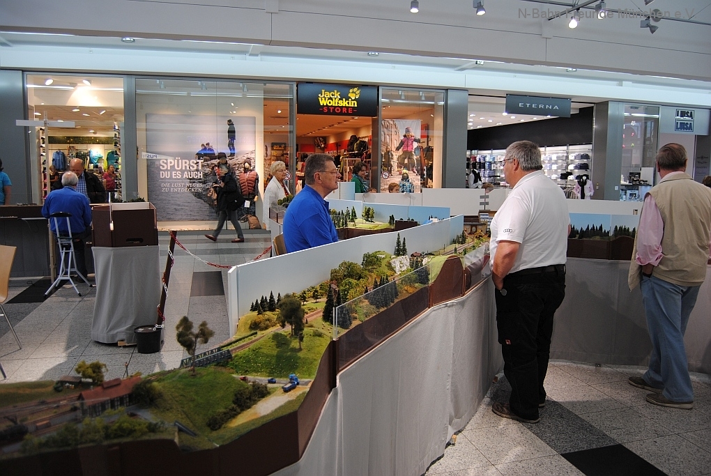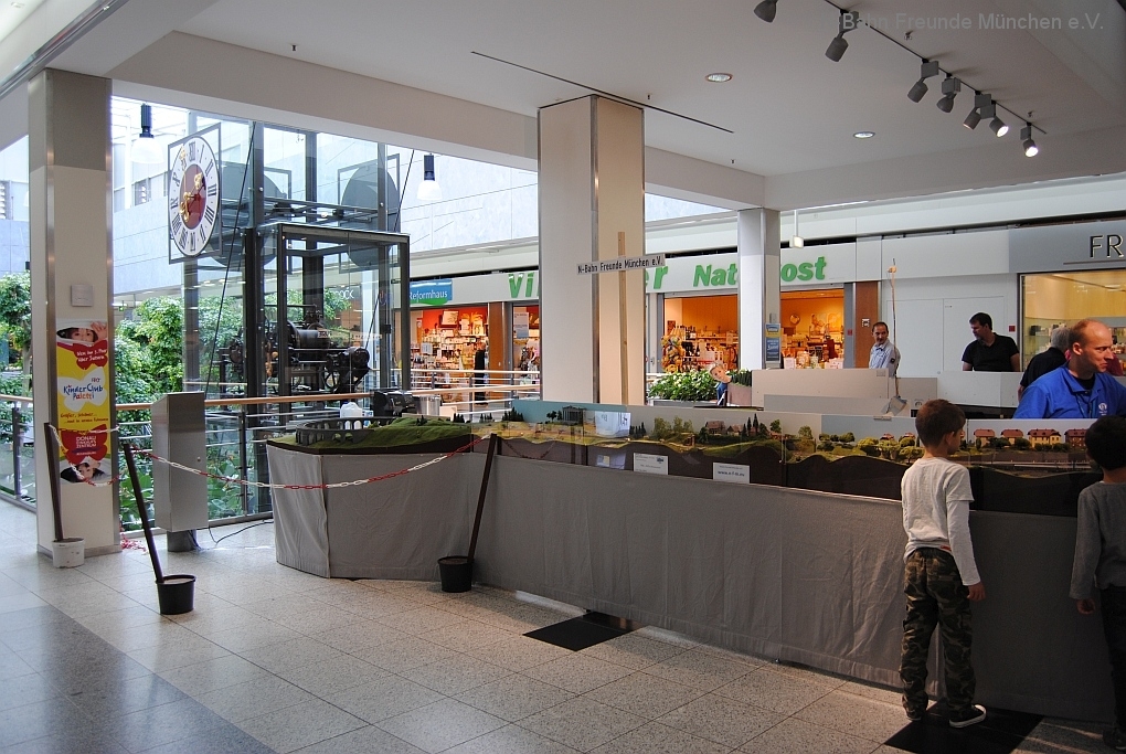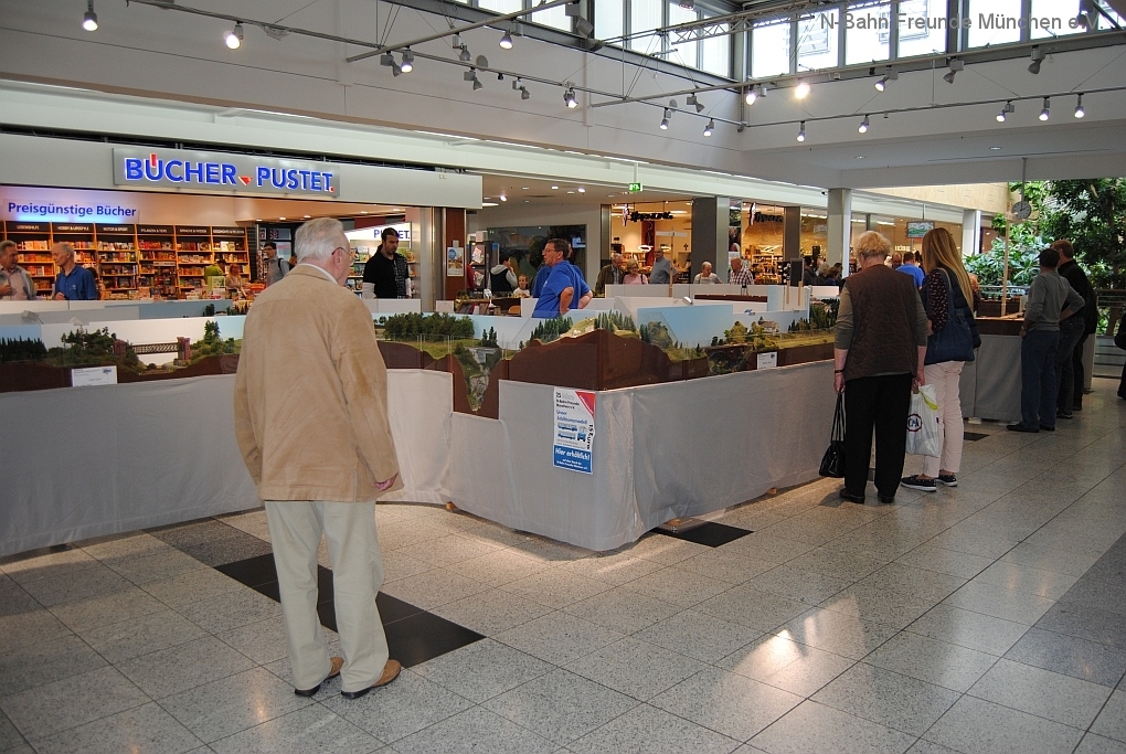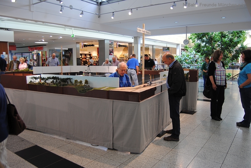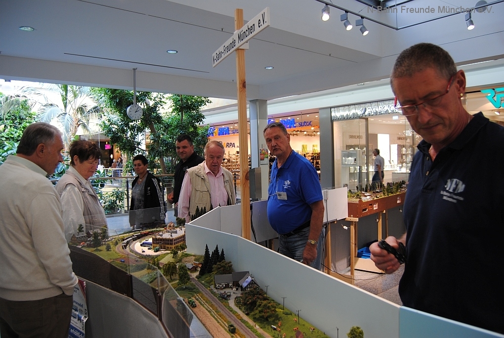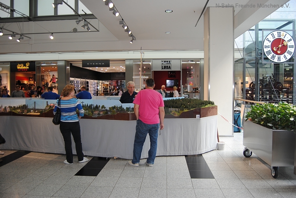 Mit der N-Spur-Schauanlage der N-Bahn Freunde München gab es Aufklärung im Donau-Einkaufszentrum. Wir waren überrascht von dem Fachwissen zur Modellbahn quer über alle Spurweiten und im Speziellen zur Spur N.