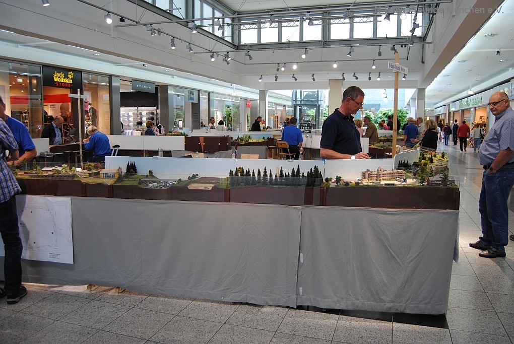 Die NFMler waren mit Ihrer Modulanlage in einer der größten Ausbaustufe für eine ganze Woche im Donau-Einkaufszentrum (DEZ) eingeladen. Mit einer gewissenhaften Planung der Anlage auf rund 180 qm bereiteten wir uns auf den Ausstellungstermin und auf die große Nutzfläche vor. Den Plan der dann realisierten Anlage können Sie in unserer Bildergalerie sehen.