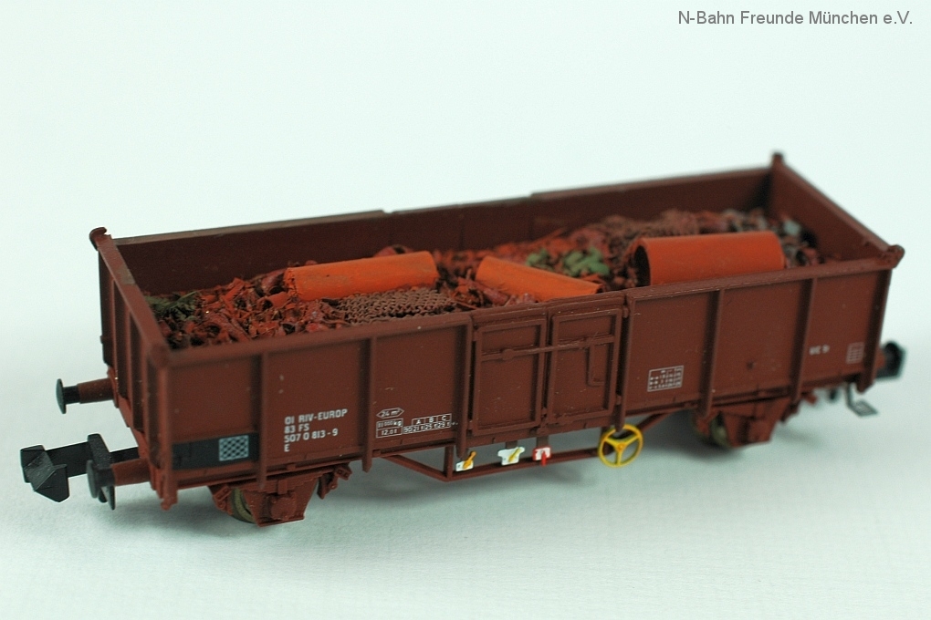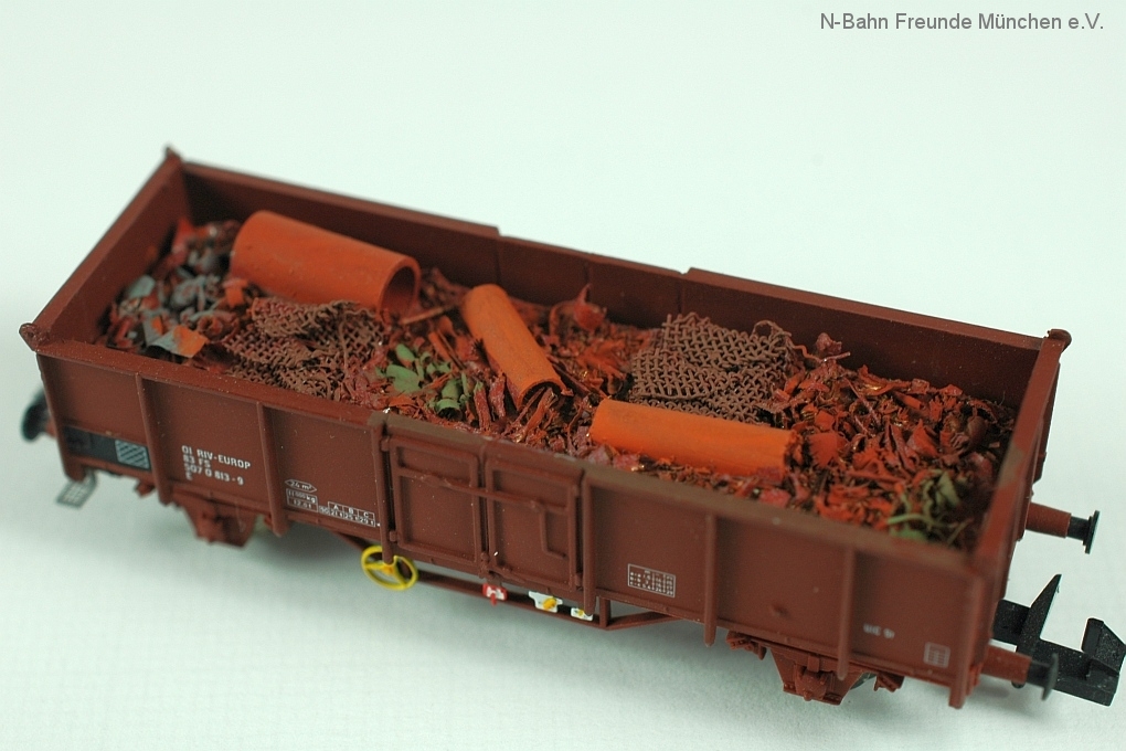 Als Vorlagen für Alterung und Ladungsverzurrung dienen unzählige Vorbildfotos, die jedermann am Bahndamm leicht selbst aufnehmen kann.